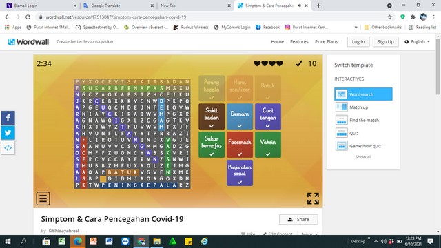 10 Jun 2021 | Aktiviti TerkiniPada 10 Jun 2021, kuiz secara atas talian berbentuk silang kata telah diadakan. Kuiz ini diadakan untuk dihantar kepada komuniti secara atas talian bagi melengkapkan kuiz silang kata tersebut. Kuiz silang kata ini bertajuk Simptom & Cara Pencegahan Covid-19 dan telah disertai seramai 7 orang komuniti.
