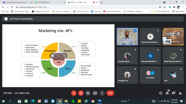 3 Disember 2021 | Aktiviti TerkiniPada 2 Disember 2021, latihan Jualan dan Asas Pemasaran Digital telah diadakan secara atas talian melalui aplikasi Zoom Meet yang dianjurkan oleh Ehsan Plant & Property Sdn Bhd dengan kerjasama Yes Academy yang mana program latihan ini sejajar dengan keperluan pemasaran digital pada masa kini. Latihan pemasaran digital adalah untuk golongan B40 mempelajari kemahiran tinggi pemasaran untuk mahir menggunakan Internet dan teknologi web untuk mencapai dan mempengaruhi pelanggan yang disasarkan dalam bidang perniagaan/pekerjaan di Malaysia. Latihan ini akan berlangsung selama 5 hari dari 29 November 2021 hingga 3 Disember 2021. Pada 2 Disember 2021, tajuk latihan adalah: