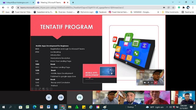 16 Disember 2021 | Aktiviti TerkiniPada 15 Disember 2021, telah berlangsungnya Staff Training 2021 bagi 4 buah Pusat Ekonomi Digital yang tersenarai iaitu Pusat Ekonomi Digital Sebandi Ulu, Pusat Ekonomi Digital Kg. Jerijeh, Pusat Ekonomi Digital Kg. Bako dan Pusat Ekonomi Digital Braang Bayur secara maya melalui aplikasi Microsoft Team. Pihak Sprintz Designs (SD) telah melantik seorang Trainer yang berpengalaman iaitu Encik Arif Osman dari YES Academy untuk mengendalikan kursus pada kali ini.