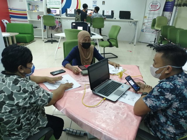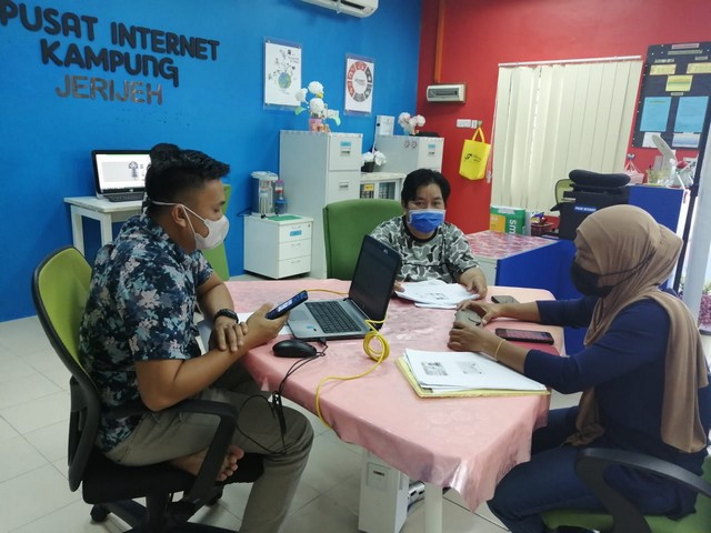 4 Januari 2022 | Aktiviti TerkiniPada 3 Januari 2022, 2 orang komuniti Kampung Jerijeh Baru telah berkunjung ke PEDi Kg Jerijeh untuk mendapatkan bimbingan untuk mengemaskini akaun Bantuan (BKM). Bantuan ini adalah inisiatif kerajaan dibawah bajet 2022 yang akan mengagih bantuan tunai secara langsung kepada kumpulan bersasar untuk isi rumah dan bujang M40, warga emas dan ibu bapa tunggal.