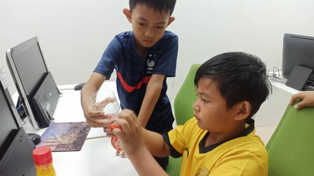 - Peserta disediakan dengan bahan seperti botol, soda bikarbonat, cuka dan balon.