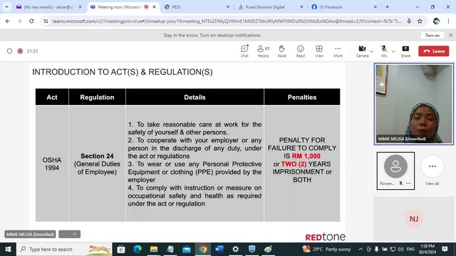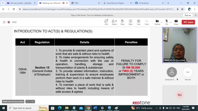 Training untuk Staf Pusat Sebaran Maklumat Nasional (NADI)- Safety Induction
