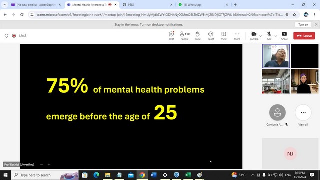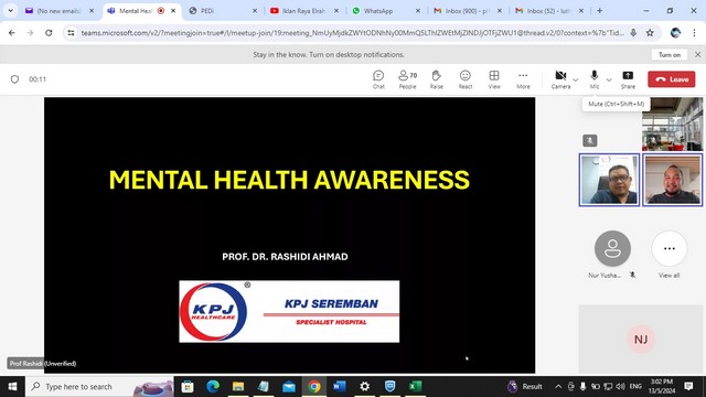 14 Mei 2024 | Aktiviti TerkiniPada 13 Mei 2024, telah berlangsungnya Staff Training 2024 bagi Pusat Sebaran Maklumat Nasional (NADI) yang tersenarai secara maya melalui aplikasi Microsoft Team. Pihak Sprintz Designs (SD) telah melantik seorang Trainer yang berpengalaman iaitu Prof Dr Rashidi Ahmad, Emergency Physician from KPJ Seremban Specialist Hospital untuk mengendalikan kursus pada kali ini. Tajuk kursus kali ini adalah Awareness Talk: Mental Health.