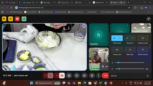 28 Ogos 2025 | Aktiviti TerkiniPada 27 Ogos 2025, Kelas NADIxMAHIR - Mahir Masak telah diadakan di Pusat Sebaran Maklumat Nasional (NADI) Kampung Jerijeh. Kelas diadakan menggunakan aplikasi Zoom. Kelas ini adalah salah satu kursus dalam program NADI MAHIR yang memberikan pengetahuan dan kemahiran dalam penyediaan makanan dan minuman. Ia merangkumi teknik kebersihan dan keselamatan dalam penyediaan makanan, resepi masakan Barat dan Nyonya dan penyediaan roti, pastri serta pelbagai minuman gaya kafe. Kelas ini berlangsung sekitar jam 9.30 pagi sehingga jam 11.00 pagi.