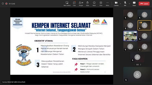 14 Jun 2025 | Aktiviti TerkiniPada 13 Jun 2025, Tot Kempen Internet Selamat (KIS) oleh MCMC (Suruhanjaya Komunikasi dan Multimedia Malaysia) telah diadakan di NADI Kg Jerijeh. Taklimat ini merupakan satu inisiatif yang bertujuan untuk mendidik rakyat Malaysia tentang penggunaan internet yang selamat, bertanggungjawab dan beretika. Program ini adalah program latihan untuk melatih jurulatih/penceramah dalam menyampaikan maklumat berkaitan keselamatan internet kepada masyarakat. Program ini dilaksanakan oleh MCMC dengan kerjasama pelbagai agensi dan organisasi. Program ini berlangsung sekitar jam 8.30 pagi sehingga 12.00 tengah hari.