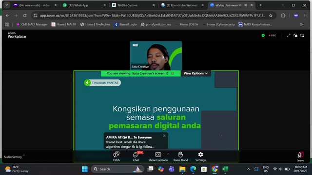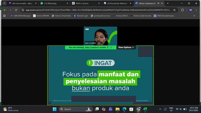 21 Januari 2026 | Aktiviti TerkiniPada 20 Januari 2026, Program e-Kelas : Strategi Pemasaran Digital secara atas talian telah diadakan di NADI Kg Jerijeh. Program ini adalah inisiatif Maxis eKelas Usahawan yang dijalankan di bawah kerjasama antara Maxis dan NADI. Program ini bertujuan untuk memperkasakan usahawan tempatan dengan kemahiran digital, terutamanya dalam mengetahui strategi pemasaran digital yang berkesan dan mampu memberi impak kepada peniagaan. Program ini berlangsung sekitar jam 10.00 pagi sehingga 11.00 pagi.