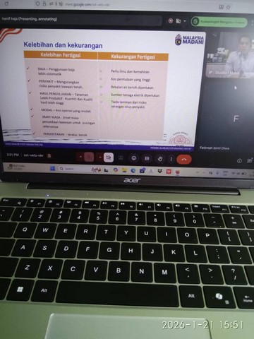 Pada 21 Januari 2026, Kelas NADIxMAHIR - Mahir Pertanian telah diadakan di Pusat Sebaran Maklumat Nasional (NADI) Kg Jerijeh. Kelas telah diadakan menggunakan aplikasi Zoom mengikut kelas yang disediakan di portal Mahir Training System (MTS). Modul Pertanian Pintar berdasarkan rancangan untuk memberikan pemahaman komprehensif tentang bagaimana teknologi digital dapat diintegrasikan ke dalam proses pengambilan keputusan dalam pertanian.