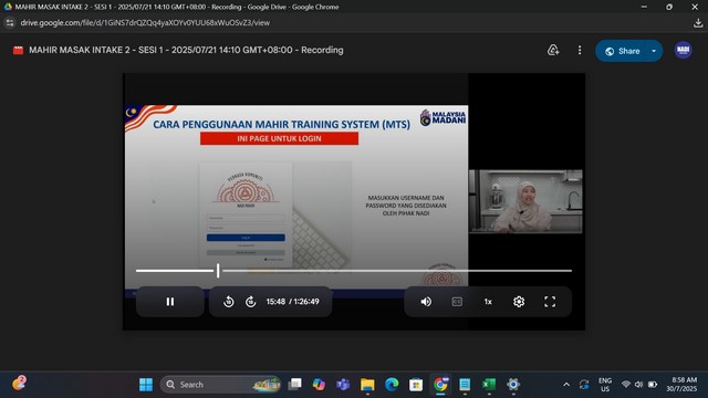 Asas Website bersama peserta Ujian Penilaian Jawatan Kosong Atas Talian SPA melalui Whatapp Video Call