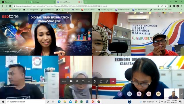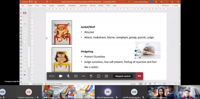 20 Mei 2022 | Aktiviti TerkiniPada 18 & 19 Mei 2022, telah berlangsungnya Staff Training Q2 2022 bagi 4 buah Pusat Ekonomi Digital yang tersenarai iaitu Pusat Ekonomi Digital Sebandi Ulu, Pusat Ekonomi Digital Kg. Jerijeh, Pusat Ekonomi Digital Kg. Bako dan Pusat Ekonomi Digital Braang Bayur secara maya melalui aplikasi Microsoft Team. Pihak Sprintz Designs (SD) telah melantik seorang Trainer yang berpengalaman iaitu Puan Cantiynia Anak Ringos dari Redtone untuk mengendalikan kursus pada kali ini. Tajuk kursus kali ini adalah Empowering Your Communication, Networking and Presentation Skills.