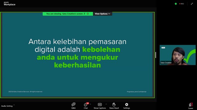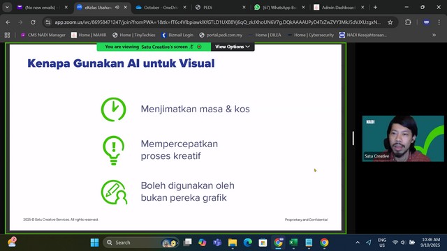 10 Oktober 2025 | Aktiviti TerkiniPada 9 Oktober 2025, Webinar Pemasaran Digital eKelas Usahawan : Mengurus & Mengukur Keberkesanan Pemasaran Digital secara atas talian telah diadakan di NADI Kg Jerijeh. Program ini adalah inisiatif Maxis eKelas Usahawan yang dijalankan di bawah kerjasama antara Maxis dan NADI. Program ini adalah kelas digital khas untuk usahawan yang megajar peserta tentang bagaimana mengurus kempen pemasaran digital secara teratur serta menilai sejauh mana kempen tersebut berjaya dilaksanakan. Webinar ini berlangsung sekitar jam 2.00 petang sehingga 3.00 petang.