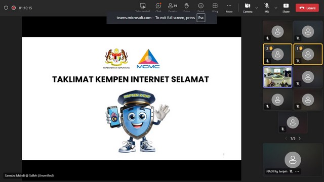 14 Jun 2025 | Aktiviti TerkiniPada 13 Jun 2025, Tot Kempen Internet Selamat (KIS) oleh MCMC (Suruhanjaya Komunikasi dan Multimedia Malaysia) telah diadakan di NADI Kg Jerijeh. Taklimat ini merupakan satu inisiatif yang bertujuan untuk mendidik rakyat Malaysia tentang penggunaan internet yang selamat, bertanggungjawab dan beretika. Program ini adalah program latihan untuk melatih jurulatih/penceramah dalam menyampaikan maklumat berkaitan keselamatan internet kepada masyarakat. Program ini dilaksanakan oleh MCMC dengan kerjasama pelbagai agensi dan organisasi. Program ini berlangsung sekitar jam 8.30 pagi sehingga 12.00 tengah hari.