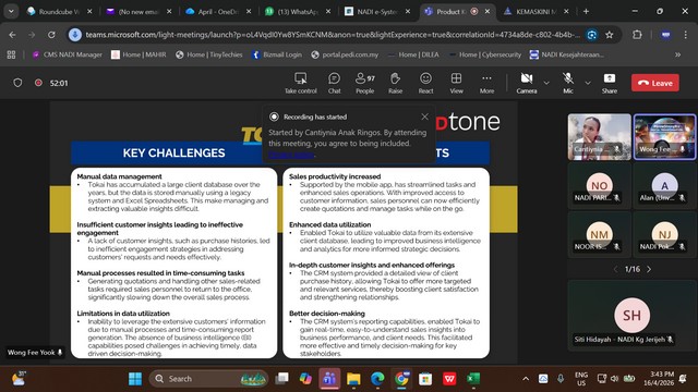 Pada 16 April 2026, telah berlangsungnya Staff Training 2026 bagi Pusat Sebaran Maklumat Nasional (NADI) yang tersenarai secara maya melalui aplikasi Microsoft Team. Pihak Sprintz Designs (SD) telah melantik seorang Trainer yang berpengalaman iaitu Puan Wong Fee Yook untuk mengendalikan kursus pada kali ini. Tajuk kursus kali ini adalah Product Knowledge : Customer Relations Management (CRM).