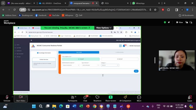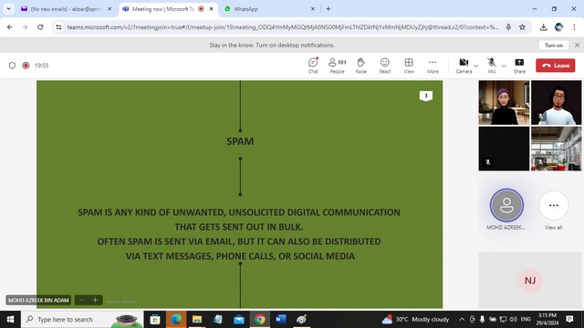 Asas Website bersama peserta Ujian Penilaian Jawatan Kosong Atas Talian SPA melalui Whatapp Video Call